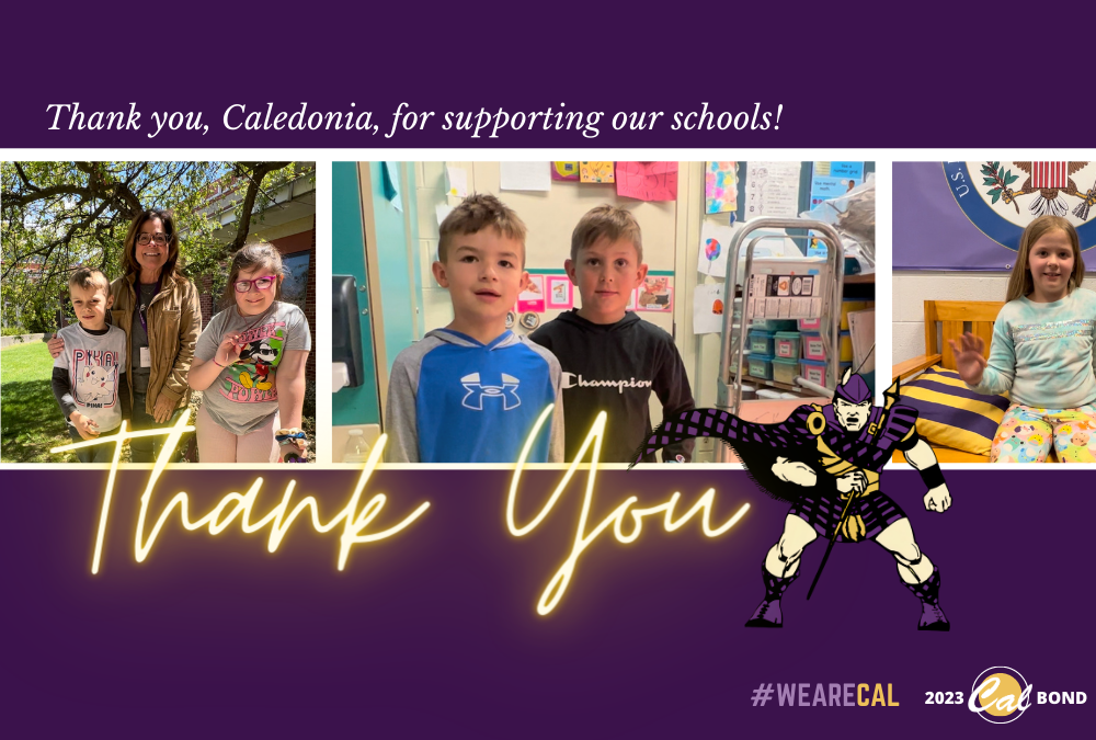 Thank you again to everyone in our community who supported this bond. It will help build on the amazing achievements of our district and keep Caledonia a place where people want to send their children to school and put down roots.
