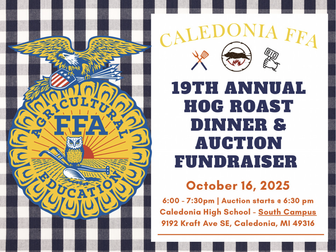 Join Caledonia FFA for a community favorite—our 19th Annual Hog Roast Dinner & Auction—supporting student leadership, agricultural education, and chapter activities.