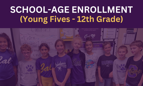 Welcome to Caledonia Community Schools! Enrollment for the 2025-2026 school year is open for all new school-age students entering Young 5's through grade 12. To complete a pre-registration request to enroll, please go to the School Age Enrollment tab below. New for the 2025-2026 school year: Approved pre-registration applications will need to have the enrollment process completed within 21 calendar days from the date of request. Please be sure to read the enrollment completion instructions carefully in order to meet this timeline. Be sure to take a minute to review our Enrollment page and all the great information and resources found on our enrollment website!