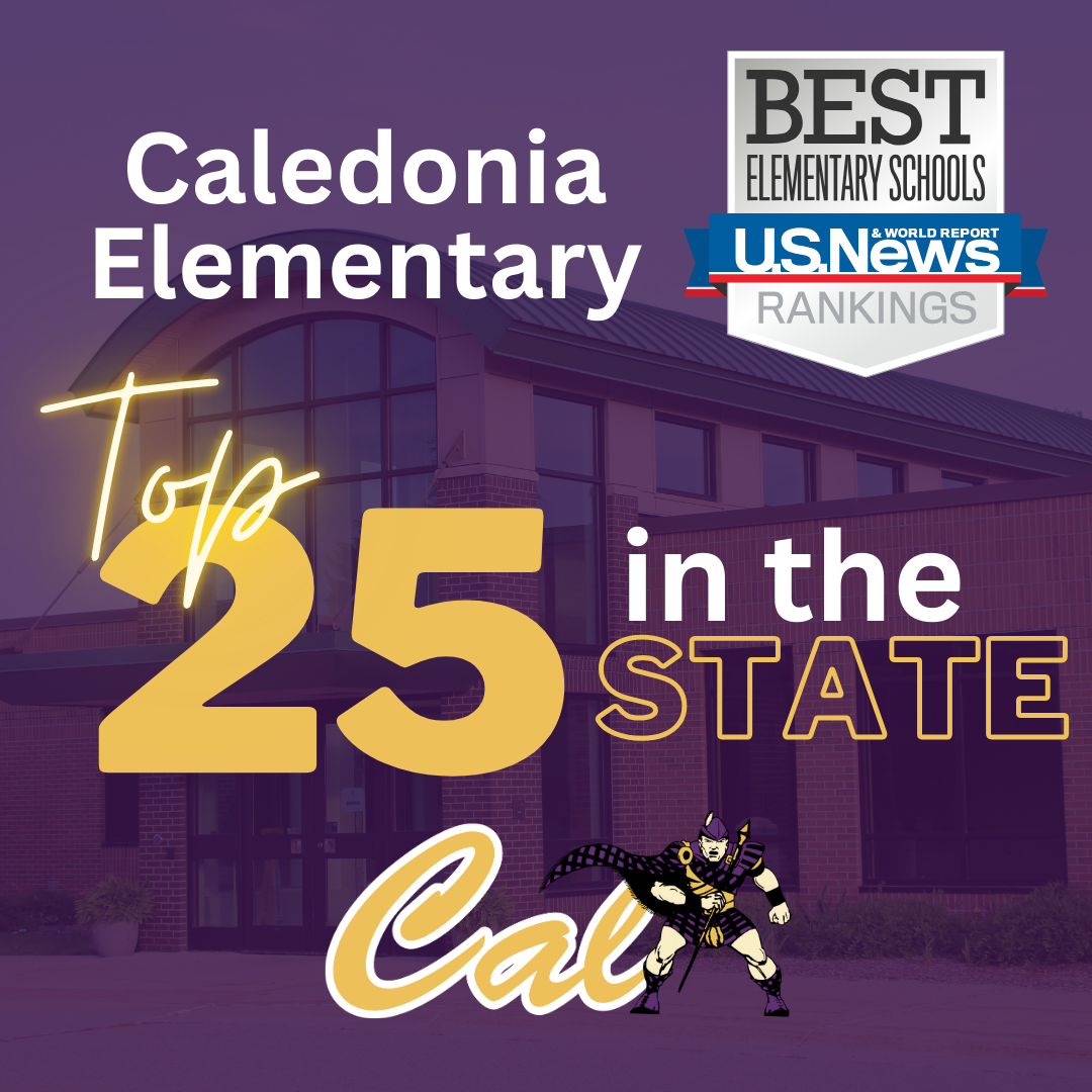 We're excited to share that Caledonia Elementary School has earned an impressive Top 25 in the state on the U.S. News & World Report's rankings for the Top Elementary Schools in Michigan! This incredible recognition reflects the hard work and dedication of our students, staff, and the entire Cal community. Way to go, Cal El!