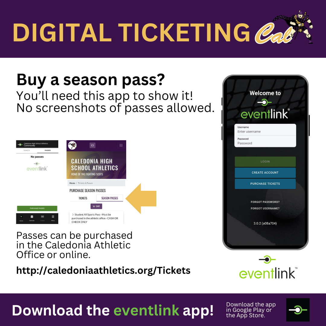 Caledonia Athletics is now using EventLink for all digital ticketing and season passes.